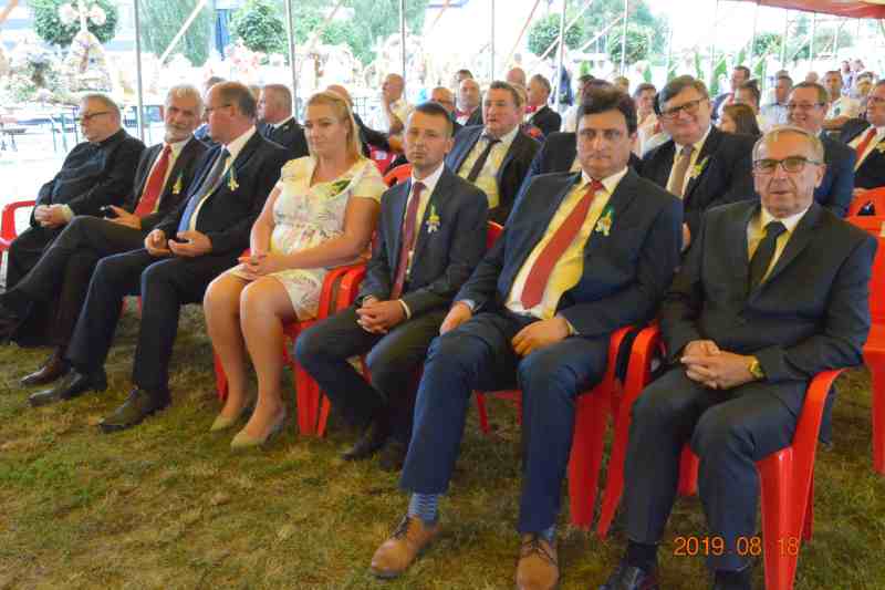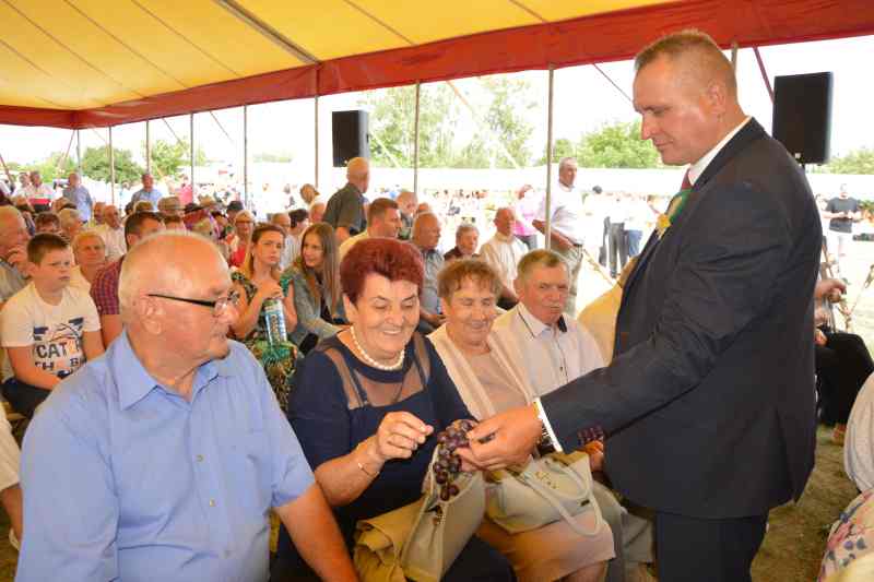 Zgodnie ze staropolską tradycją, zaszczytną rolę w obrzędach dożynkowych pełnią starostowie dożynek. W tym roku zostali nimi Dominika Przyłęcka z Wojciechowa i Dawid Jasnowski z Kawęczyna. Starościna to mama trójki dzieci, wraz z mężem prowadzi gospodarstwo rolne o pow. 13 ha, które specjalizuje się w hodowli drobiu i uprawie zbóż. Starosta natomiast swoje 10 ha gospodarstwo prowadzi wraz z rodzicami. Oparte jest na hodowli bydła opasowego, uprawie zbóż i ziemniaków. Przekazali oni na ręce wójta Jana Nowaka chleb dożynkowy, który został podzielony i rozdany wśród uczestników wydarzenia. O oprawę muzyczną podczas niedzielnego święta zadbała Orkiestra Dęta Tokary oraz zespół ludowy „Kawęczyniacy”.