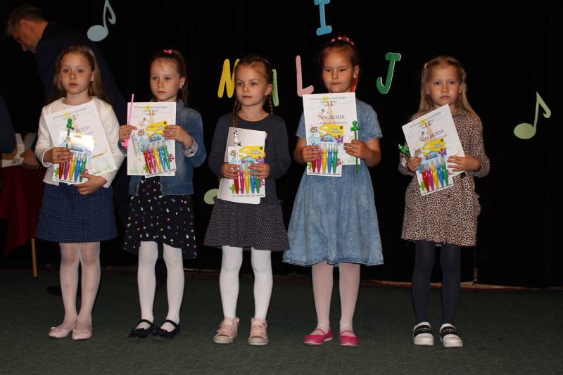 Filip Krupiński z ZS-P w Dobrej, Maja Ciemniewska z Gminnego Przedszkola w Brudzewie, Nikola Janik z Przedszkola Gminnego w Kowalach Pańskich wraz z zespołem, Oliwia Kustosz z ZS-P w Dobrej wraz z zespołem, Witold Piaskowski z ZS-P w Grzymiszewie. Ponadto komisja zdecydowała się przyznać wyróżnienia Neli Nowickiej z SP w Koźminie, Idze Graczyk z ZS-P w Dobrej, Julii Karbowy z Gminnego Przedszkola w Brudzewie wraz z zespołem, Katarzynie Gryglewskiej z SP w Galewie z Filią w Chrząblicach oraz Joannie Krasce z ZS-P w Piekarach z zespołem.