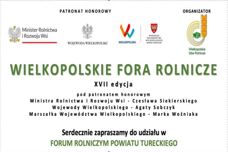 Już po raz 17. Wielkopolska Izba Rolnicza, wraz z partnerami instytucjonalnymi i społecznymi, organizuje cykl spotkań informacyjno-szkoleniowych pod nazwą „Wielkopolskie Fora Rolnicze”. O patronat nad forami, tradycyjnie wystąpiliśmy do Ministra Rolnictwa i Rozwoju Wsi, a ponadto – do Wojewody Wielkopolskiego i Marszałka Województwa Wielkopolskiego.