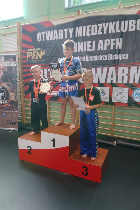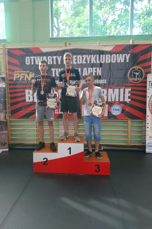 Najmłodszym członkiem kadry był Aleksander Piaseczny. 9 latek z Żuk nie miał sobie równych w konkurencjach uderzanych i wszystkie walki wygrał z kolosalną przewagą. Ostatecznie w swojej kategorii wiekowej w formule Point Fighting zajął pierwsze miejsce. Jako małolat, brał udział również w walkach na piankowe pałki, w finale ulegając miejscowemu zawodnikowi. Kolejnymi reprezentantami naszej drużyny byli nieco starsi już nastolatkowie, startujący w walkach Piont Fighting.