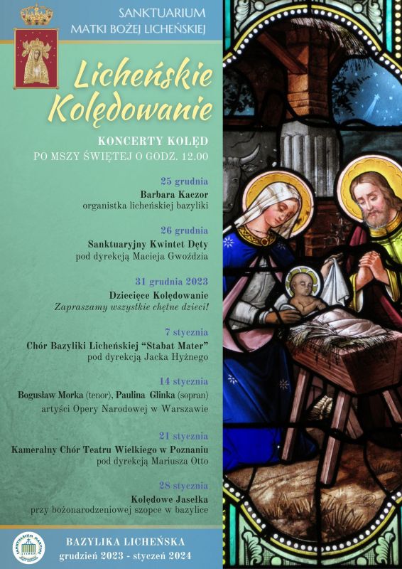 Już po raz trzeci w bazylice odbędzie się cykl koncertów świąteczno-noworocznych. Każdy z nich zaczynać się będzie po Mszy Świętej o godz. 12.00.