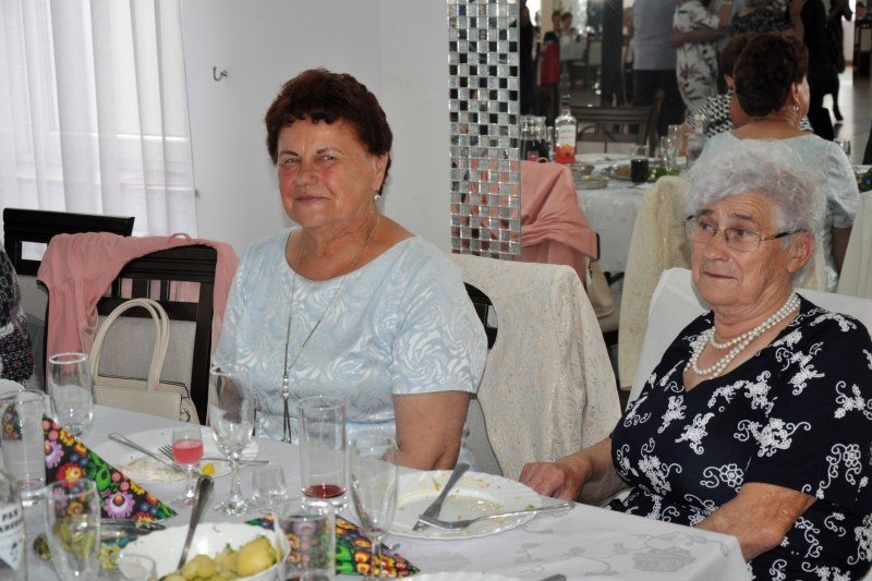 Po części oficjalnej zaproszono wszystkich na uroczysty poczęstunek poprzedzony lampką szampana oraz odśpiewaniem tradycyjnego sto lat w wykonaniu panów. Po obiedzie wszyscy wzięli udział w zabawie, która trwała do późnych godzin wieczornych.
