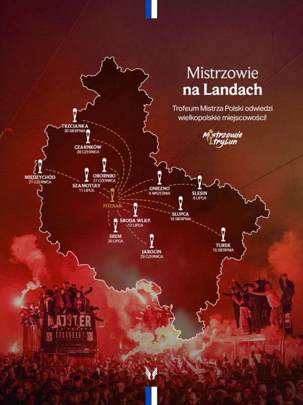 Ten sukces nie byłby możliwy bez wuchty wiary, która pojawiała się przy Bułgarskiej, by wspierać lechitów w każdym meczu. Nie tylko byliśmy najlepsi w poprzednim sezonie na boisku, ale również na trybunach notując rekordową frekwencję. By wam podziękować i by być jeszcze bliżej naszej niebiesko-białej społeczności, na początku czerwca ruszyliśmy z trofeum do wielkopolskich powiatów.