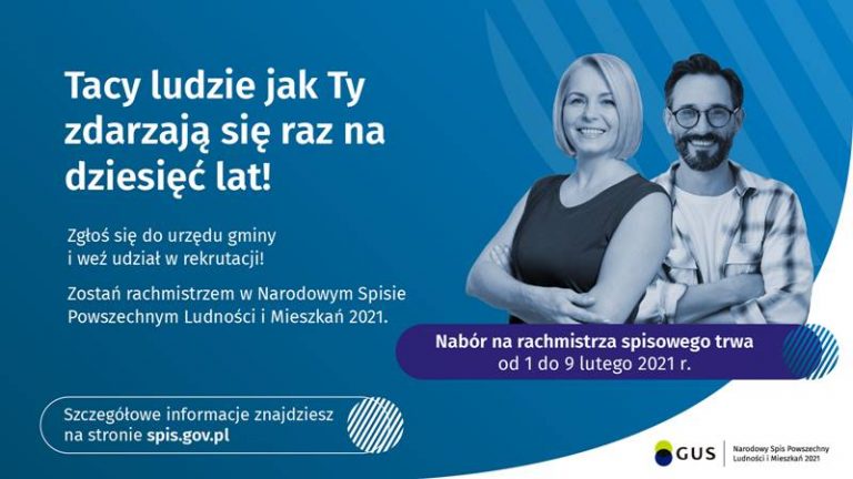 Zbliża się Narodowy Spis Powszechny 2021, który potrwa od 1 kwietnia do 30 czerwca. Osoby zainteresowane mogą zgłosić swoją kandydaturę na rachmistrza spisowego. Termin składania ofert od 1 do 9 lutego 2021 r.