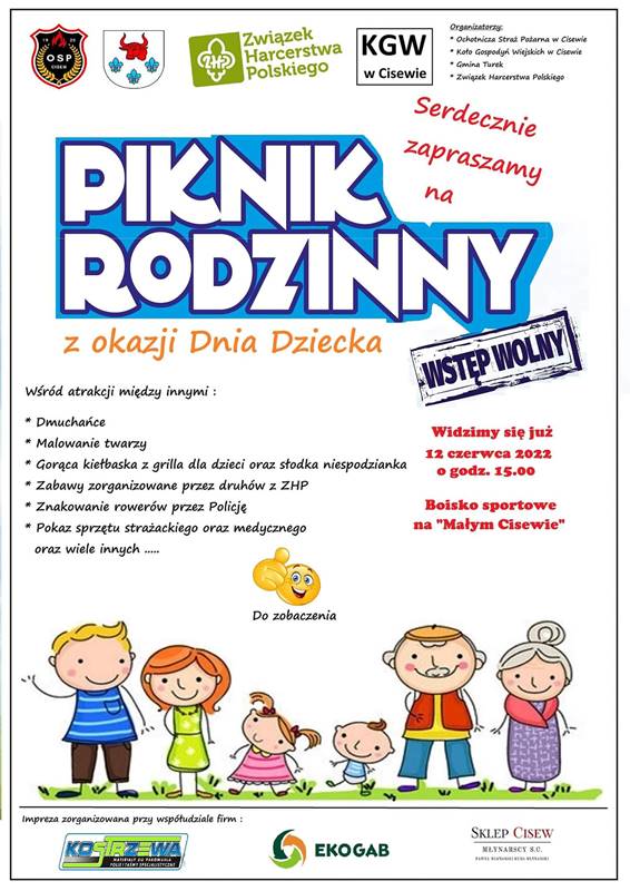 Kila dni temu odbyło się ulubione święto wszystkich dzieci. Dlatego najmłodszych jak i nieco starszych zapraszamy w najbliższą niedzielę na piknik rodzinny. Wiele atrakcji czekać będzie na boisku sportowym na „Małym” Cisewie.