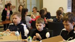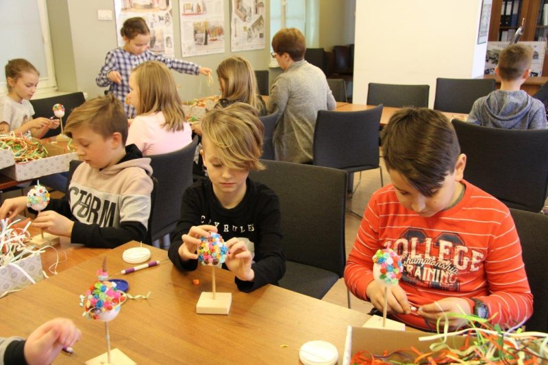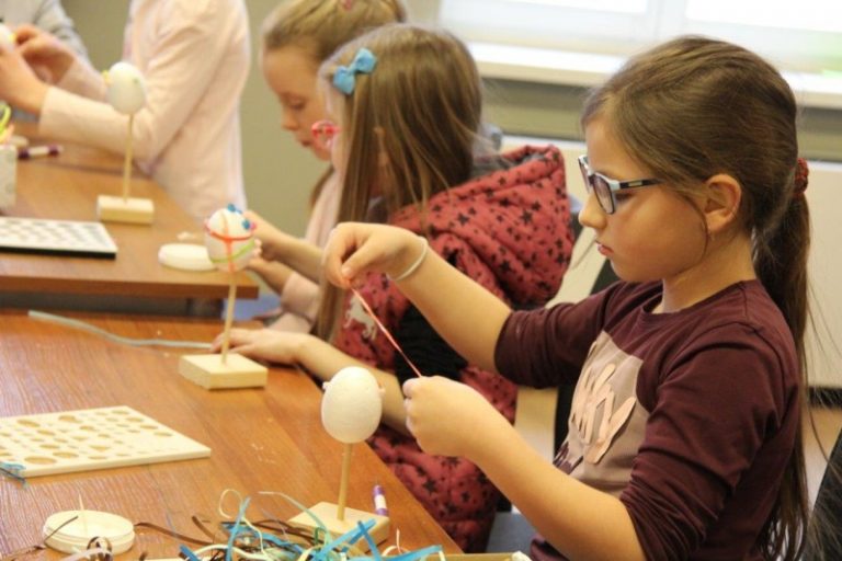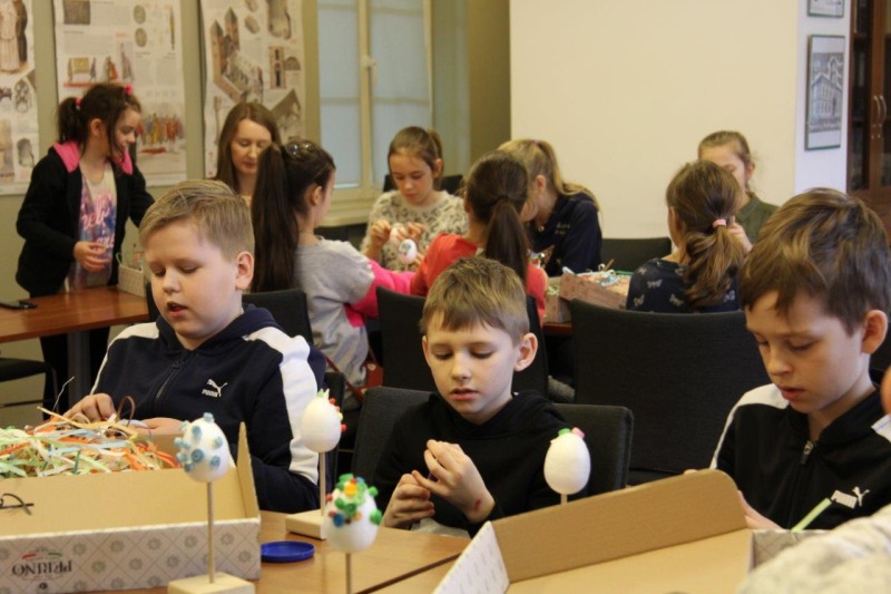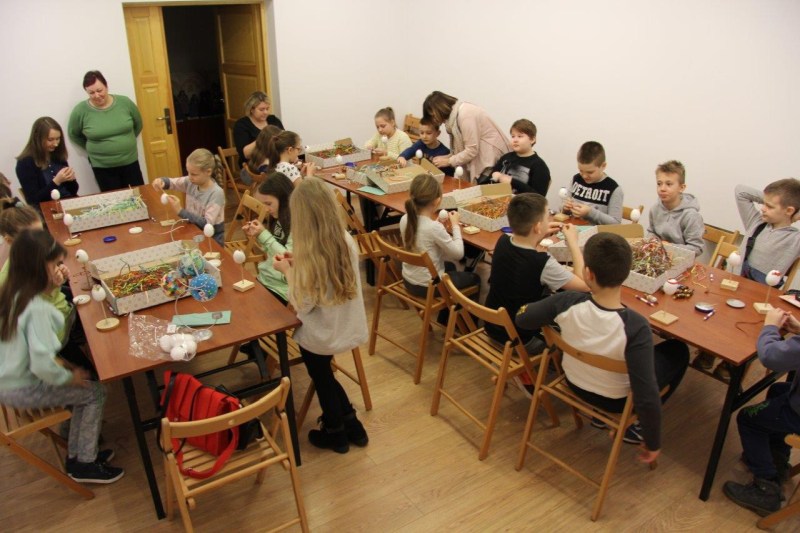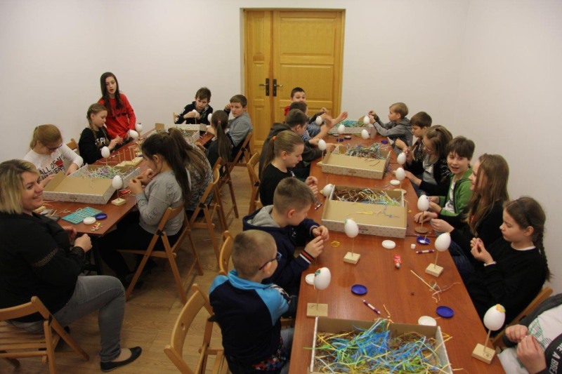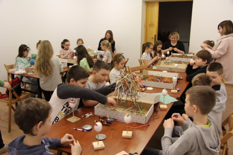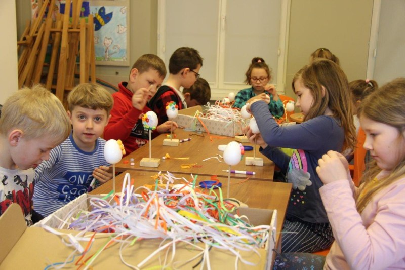 W dniach od 11 marca do 10 kwietnia uczestnicy warsztatów mieli okazję stworzyć przepiękne pisanki. Najmłodsze dzieci z grup przedszkolnych wykonywały pisanki na filcu ozdabiane przeciąganą kolorową wstążką, natomiast starsze dzieci ze Szkół Podstawowych ozdabiały styropianowe jajka metodą quillingową. Dzieci tworzyły pod okiem pracowników muzeum Katarzyny Kasprzak i Joanny Markiewicz. Własnoręcznie ozdobione pisanki dzieci zabierały ze sobą, mogąc obdarować nimi swoich bliskich. Warsztaty cieszyły się bardzo dużym zainteresowaniem, wspólna praca pozwoliła nam poczuć atmosferę zbliżających się Świąt Wielkiej Nocy.