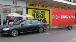 Od kilku dni w wielu miejscowościach w kraju i w Wielkopolsce można spotkać samochody z dużym banerem PiS=Drożyzna. W środę przed południem akcja dotarła do Turku.