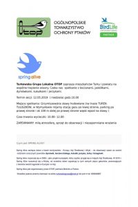 Turkowska Grupa Lokalna OTOP zaprasza mieszkańców Turku i powiatu na wspólne tropienie wiosny. Ptasi detektywi w ramach akcji Spring Alive tym razem zajmą się obserwacją bocianów, jaskółek, dymówek, kukułek oraz jerzyków.