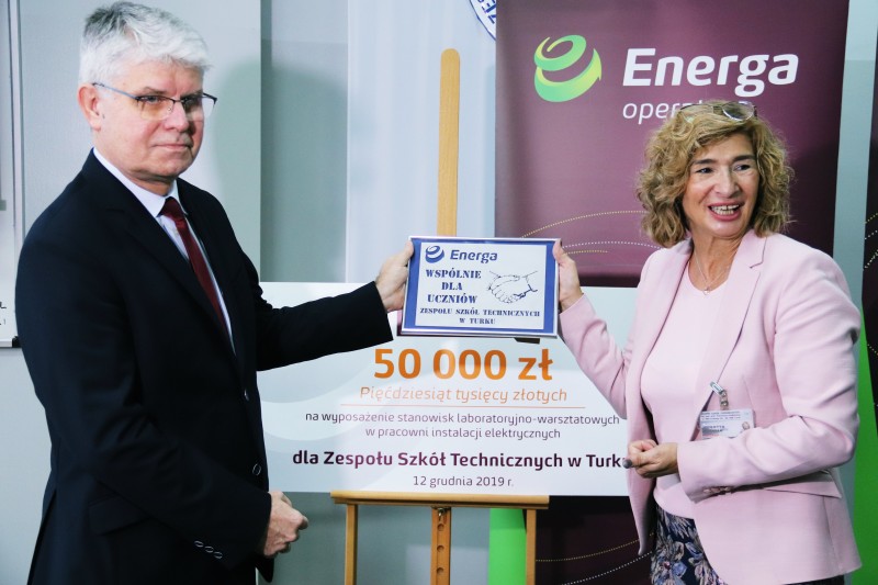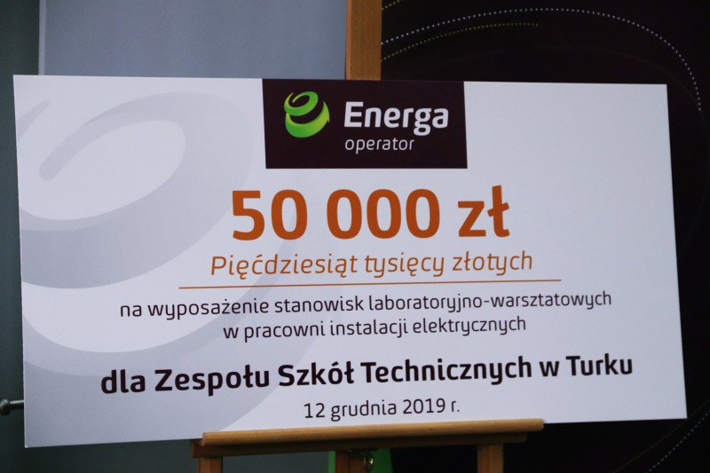 Energa Operator stworzyła program „Energ(i)a do Nauki”. Wszystko po to, aby kształcić przyszłych energetyków od najmłodszych lat. Do projektu dołączył Zespół Szkół Technicznych im. gen. prof. S. Kaliskiego w Turku. Uczniowie szkoły w Turku mogą liczyć nie tylko na stypendia, ale i środki na wyposażenie pracowni technicznych. Dziś przekazano czek na kwotę 50 000 zł z przeznaczeniem na doposażenie szkolnego laboratorium.