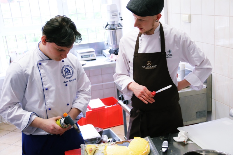 Młodym adeptom sztuki kulinarnej zaproponował stworzenie trzech rodzai mnoporcji i jednego deseru tradycyjnego. – Cukiernictwo jest bardzo metodyczne, wymaga bardzo wysokich umiejętności organizacyjnych. Kluczowe jest przyszykowanie baz, kremów, narzędzi. Samo już wykańczanie tych deserów nie jest ciężkie – zaznacza szef kuchni.