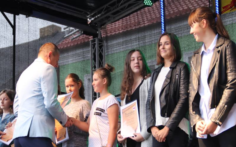 Na scenie, w niedzielę pojawili się także tegoroczni stypendyści, którzy odebrali listy gratulacyjne za wysokie wyniki w nauce. Ponad 400 uczniów szkół podstawowych, oddziałów gimnazjalnych oraz ponadgimnazjalnych może pochwalić się średnią ocen 5,0.