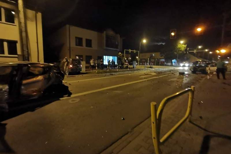 Na skrzyżowaniu ulicy Chopina, Kączkowskiego i 3-Maja doszło do zderzenia dwóch samochodów osobowych. Wypadek wydarzył się ok. godz. 22.00 w czwartek. Z czterech osób uczestniczących w groźnie wyglądającej kolizji, jedna została przewieziona do szpitala.