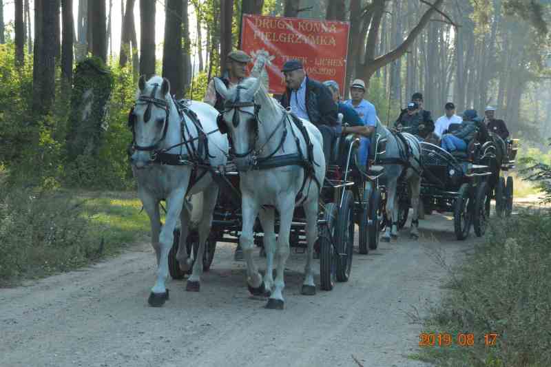 Konna pielgrzymka do Lichenia wyruszyła 17 sierpnia o 7.00 rano sprzed kościoła św. Barbary w Turku. Jechali konno całymi rodzinami, ze swoimi dziećmi i wnukami. Dla najmłodszych taki rodzaj pielgrzymowania w zaprzęgach to niezwykłe doświadczenie i nie da się ukryć frajda. Przed bazylikę Najświętszej Maryi Panny Licheńskiej zajechali popołudniu, gdzie czekali na nich księża marianie: ks. Bogusław Binda, przełożony licheńskiej wspólnoty zakonnej księży marianów i ks. Adam Stankiewicz, wicekustosz licheńskiego sanktuarium. Po poświęceniu jeźdźców i zaprzęgów uczestnicy pielgrzymki wraz z pocztem sztandarowym wzięli udział we mszy św. zawierzając swoje intencje Bolesnej Królowej Polski.