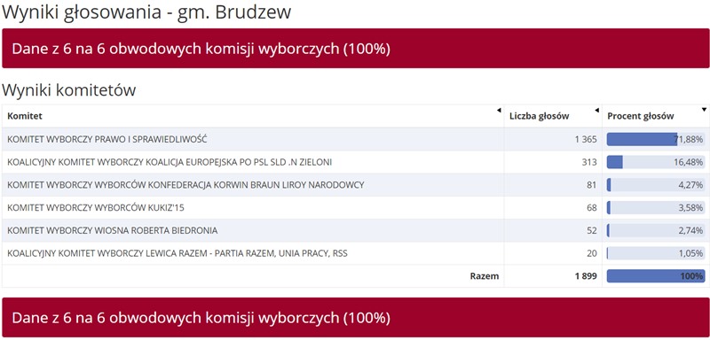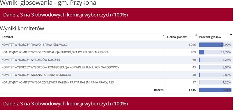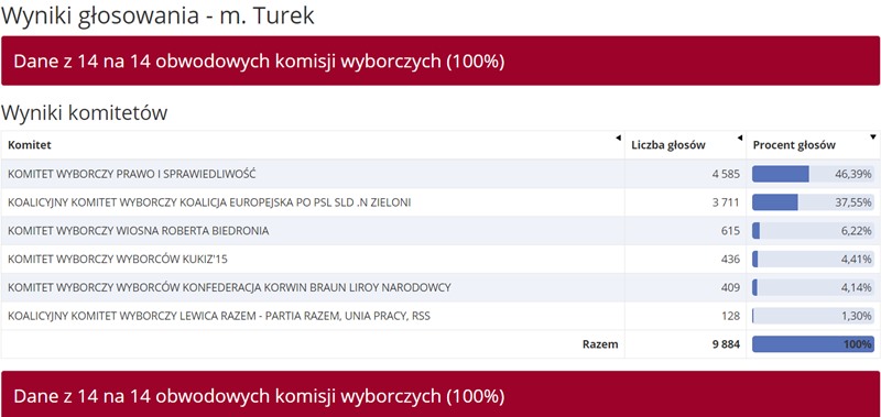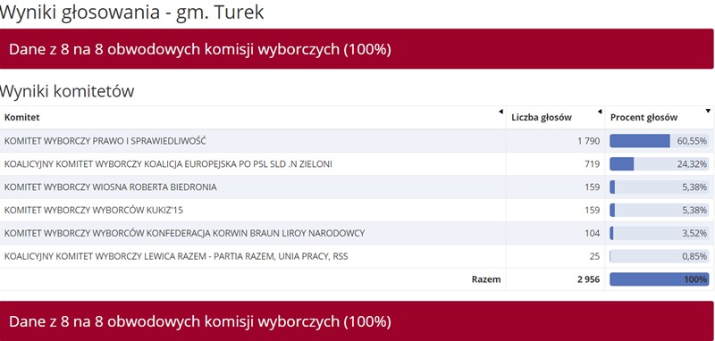Poniżej wyniki głosowania z poszczególnych gmin powiatu tureckiego.